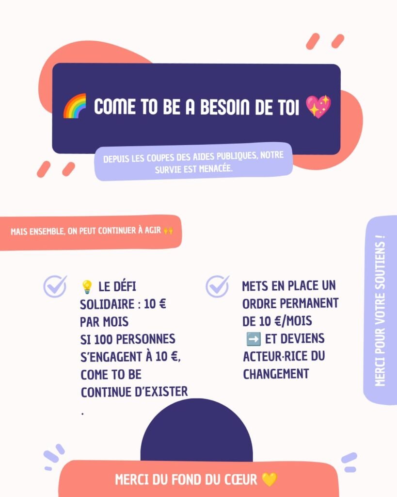 Si 100 personnes s’engagent à 10 €, Come To Be continue d’exister.